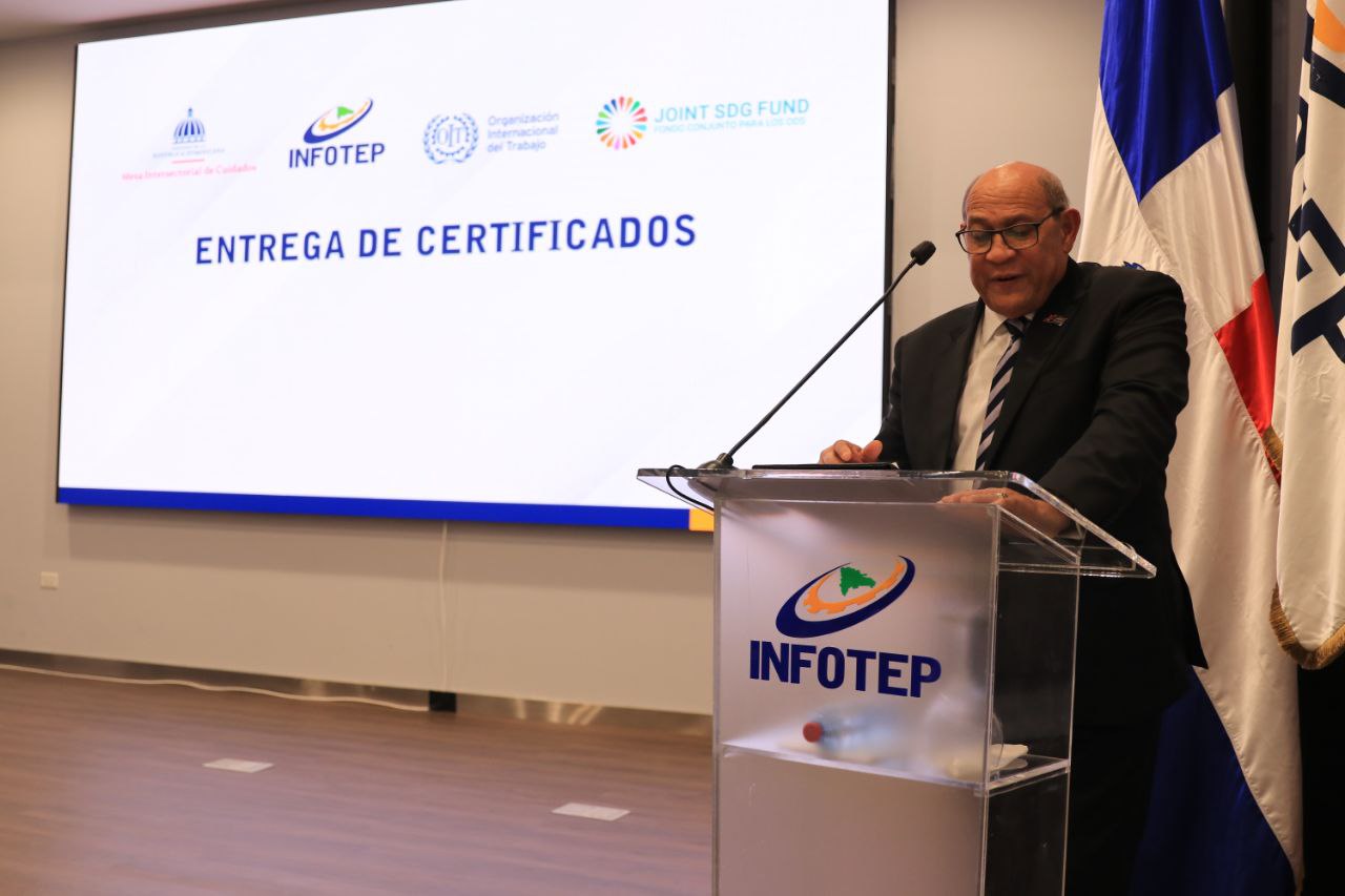 Juan Felipe Hunt Ortíz, director de la Oficina de la Organización Internacional del Trabajo (OIT) para América Central, Haití, Panamá y República Dominicana, resaltó la importancia de estas capacitaciones que contribuyen con una de las principales misiones de esa organización, que es promover el trabajo decente y la justicia social.