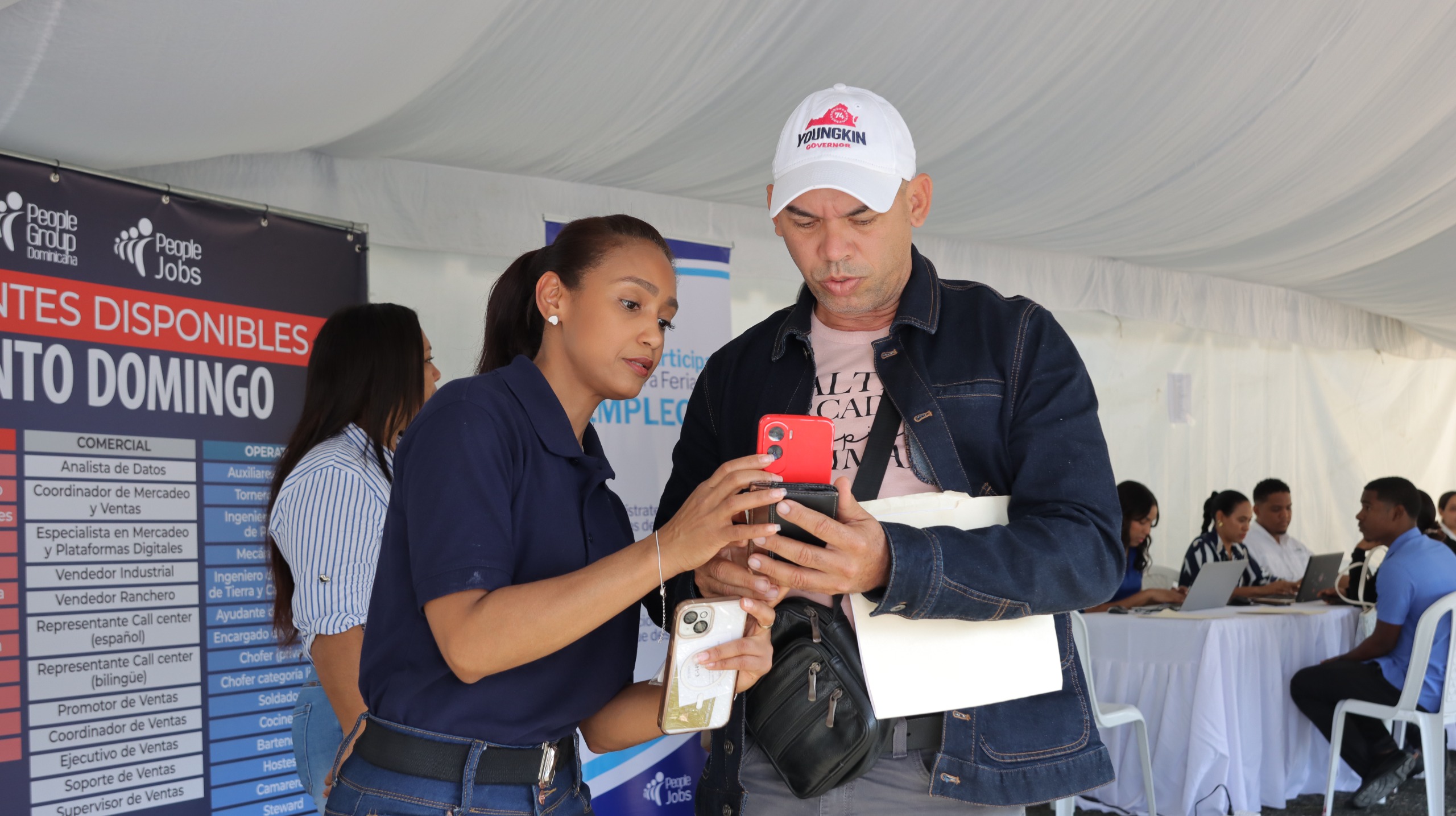 La feria se realizó de forma presencial y virtual, dónde las personas se registraron en Supérate, pasaban a escanear un código QR para completar datos necesarios para postularse a vacantes operativas, comerciales y administrativas de People Group Dominicana.