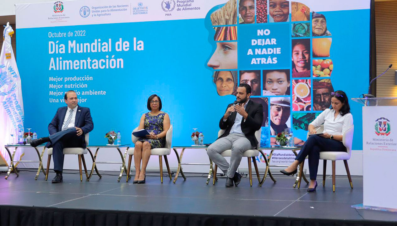 SANTO DOMINGO, 18 de octubre de 2022-. El Ministerio de Relaciones Exteriores (MIREX), junto a la Organización de Naciones Unidas para la Alimentación y la Agricultura (FAO) y el Programa Mundial de Alimentos (PMA), celebraron una actividad para conmemorar el Día Mundial de la Alimentación en el país.