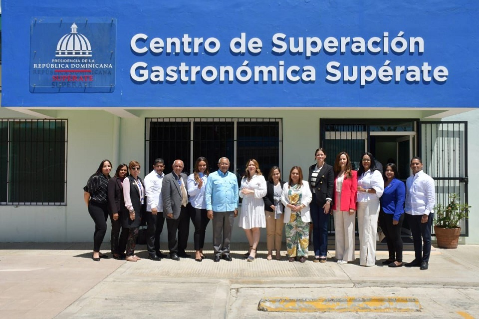BOCA CHICA, 29 de marzo de 2023.- La directora general de Supérate, Gloria Reyes, recibió la visita de cortesía de Salvador Ramos, director general y autoridades de la Oficina Nacional de la Propiedad Industrial (Onapi), en el Centro de Superación Gastronómica Supérate (CSGS), de los Botados de Boca Chica, con el propósito de mostrarles las instalaciones y el trabajo que realiza el programa ofreciendo capacitaciones en temas de cocina y gastronomía.