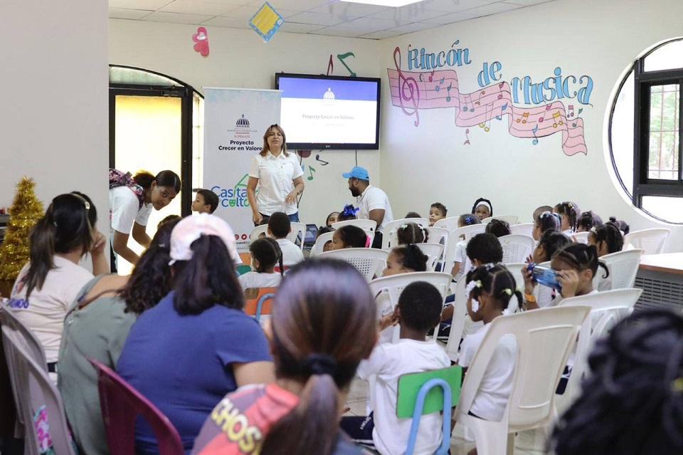 La directora del Proyecto Crecer en Valores, Amerfi Cáceres, resaltó que desde el proyecto están trabajando en la salud mental de niños y niñas, para erradicar la violencia y rescatar los valores que se han perdido, al tiempo que manifestó su deseo de llevar el programa a cada rincón del país.